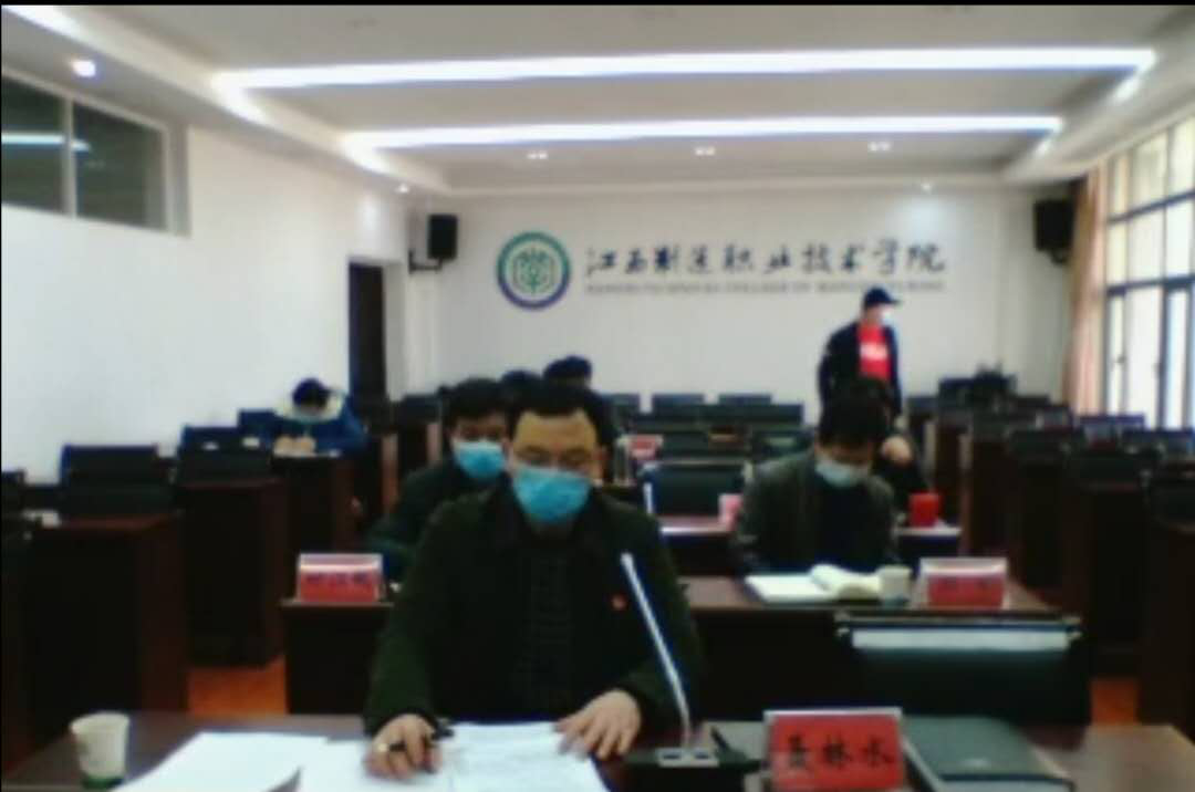 2月26日上午10:40至12:10,我院参加疫情防控工作校际视频督查会议并接受督查。本次校际督查由江西外语外贸学院、江西生物科技职业学院、江西泰豪动漫职业学院等三所学校督查我院的疫情防控工作。三所督查院校的主要负责同志和疫情防控领导小组成员参加了视频会。我院全体院领导、疫情防控领导小组成员参会。会议由牵头单位江西外语外贸学院院长朱隆亮主持。