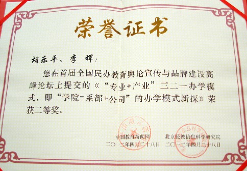 “专业+产业”三二一办学模式为全国首创。《初探》一文围绕办学模式的界定、模式下得组织架构、课程体系、学习方式的变革等方面,对“产业+专业”三二一办学模式展开了全方位的深入解读与探讨。本论文此前还获得了江西省高校创业教育研讨会论文二等奖。