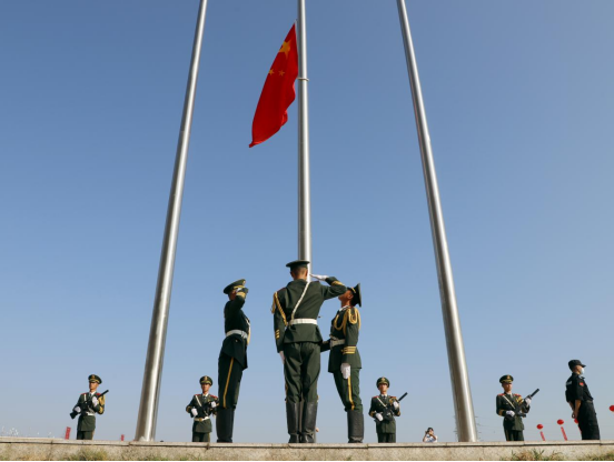 五星红旗,象征祖国的威严浩气,国旗护卫队英姿飒爽,擎着鲜艳的五星红旗,迈着坚定的步伐,庄严地举行升国旗仪式。国歌响起,全体师生齐声合唱,注视着国旗冉冉升起,向国旗致敬,向祖国敬礼。