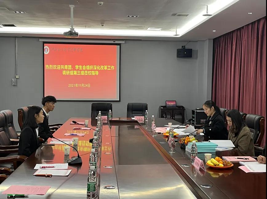 为深入贯彻落实团省委、省学联《关于开展全省学生会组织改革情况分类评估调研和学校共青团改革评价的方案》要求,切实加强和改进新形势下我校共青团、学生会工作,推进共青团、学生会改革创新。11月24日下午,由南昌航空大学团委副书记兼学生会秘书长赵晨、南昌航空大学软件学院团委书记肖李静、江西省学联执行主席王玥组成的团省委评估调研工作第三小组一行来校调研指导并召开座谈会。校党委书记、督导专员赵顶兴,常务副校长李盛艳,党委副书记马江华,相关职能部门负责人及部分学生代表参加座谈会。