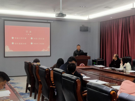 随后,刘明初校长结合我校“十四五”发展规划、建设高水平职业院校和升本发展目标向各分院及职能部门提出要求。他指出,明年我校将迈入新的发展阶段,各分院要围绕升本专业群建设、科研项目推进、技能大赛组织等工作;职能部门应牢固树立全心全意为教学和学生服务的意识,研究工作方法、优化办事流程、提高工作效率,力争在“十四五”期间实现学校升本目标。