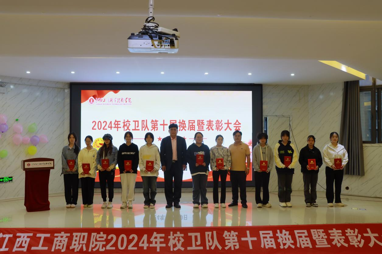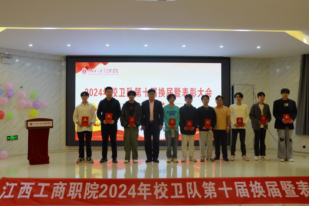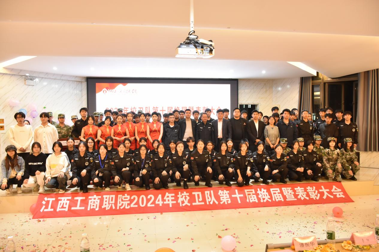 以热血激扬青春,学生校卫队是一支维护学校的安全稳定工作的坚强后备力量,为进一步加强校卫队队伍建设,激励新一届校卫队队员传承光荣使命。10月30日,我校2024年校卫队第十届换届暨表彰大会在学校艺术学院报告厅召开。学校分管安全工作校领导胡鹏飞出席会议,学校保卫处周圣华处长及全体保卫处干群、全体教官队、新老校卫队成员,还邀请到4所兄弟院校保卫处的领导、学校团委、各分院学生会代表共200余人参加本次换届表彰大会。大会在庄严的国歌中拉开帷幕。校卫队指导老师潘振华作校卫队2023年校卫队工作总结;首先对校卫队全体成员本年度的辛勤工作和优异成绩表示了肯定和感谢,学生校卫队在日常开展工作期间,在校园安全隐患排查、维护校园各种大型活动的安全、交通秩序、协助保安门岗管理等工作中取得了一定成绩。同时对校卫队提出了三点期望:一是砥砺工商学院情怀,继续为学校安全做好稳定工作;二是锤炼每个队员品德修养;三是练就过硬本领,将来走出校门为社会做出更大的贡献。