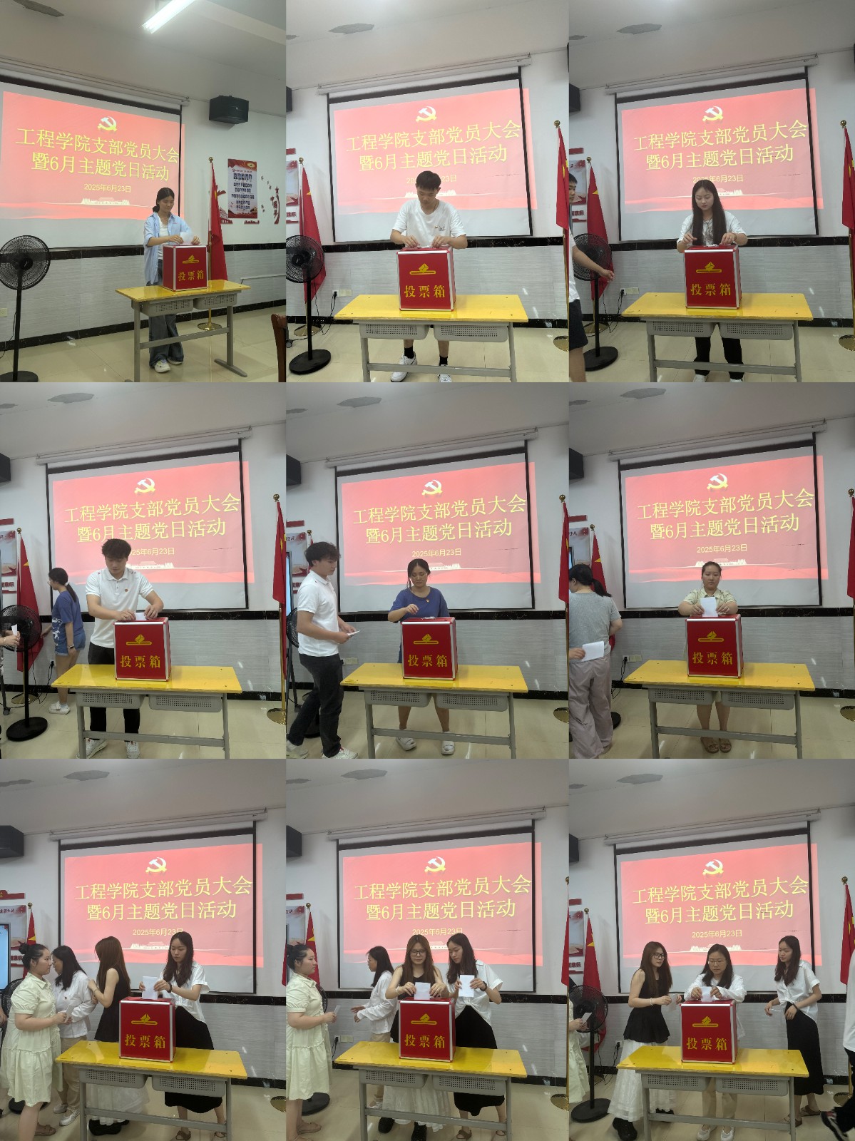 6月23日,工程学院党支部在党员活动室北501召开党员大会暨6月主题党日活动。会议由党支部书记胡志鹏主持,全体师生党员参加。