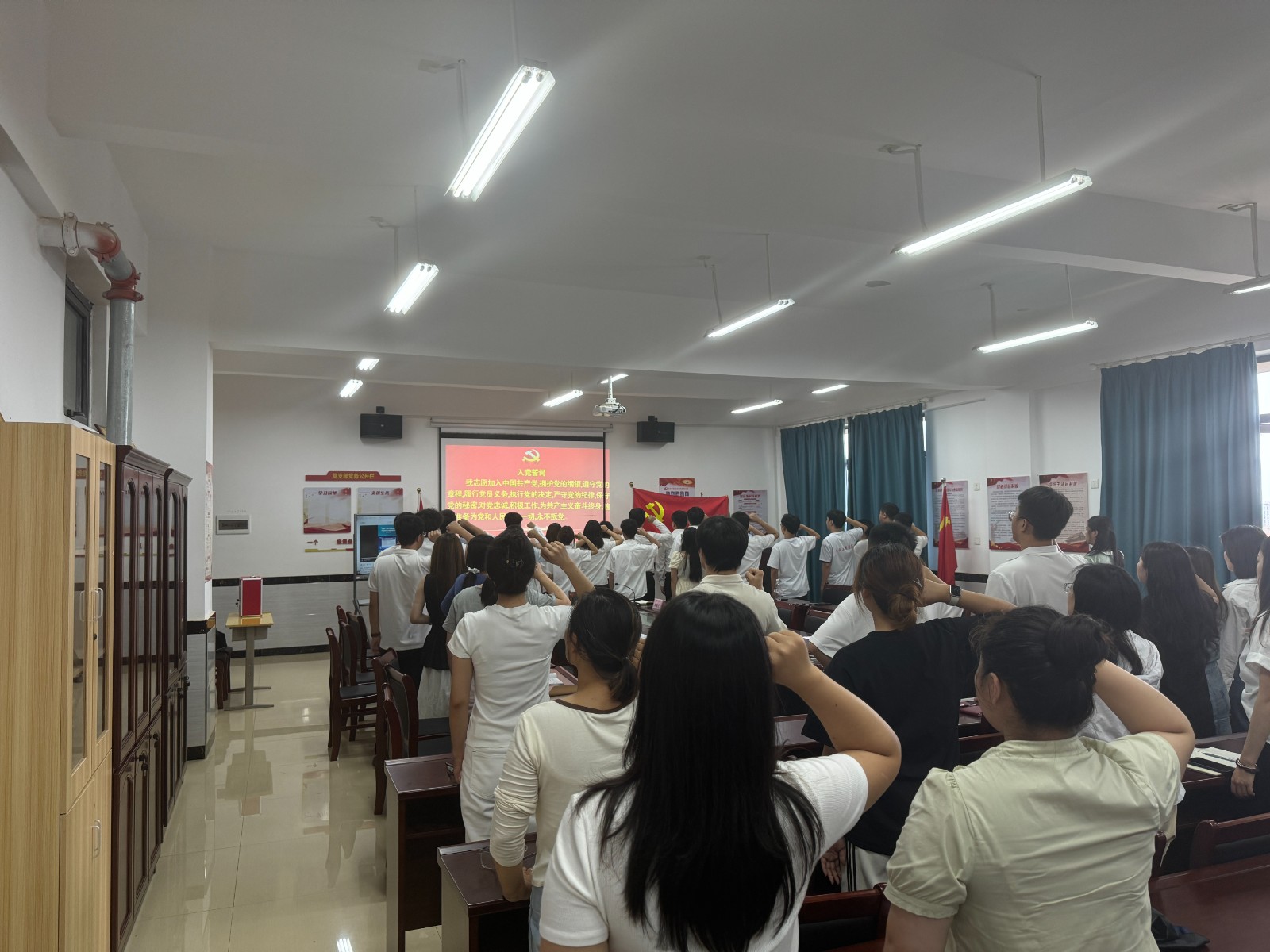 最后开展了毕业生党员行前教育,组织员任泰鸣围绕毕业生党员组织关系转接工作,详细讲解转接流程、注意事项及时间节点,着重强调党员的组织关系是党员政治身份的证明,务必规范、及时完成转接。活动中,毕业生党员踊跃发言,回顾大学经历,分享学习、实践与感悟,大家倾听并交流,凝聚共识。最后新老党员面对党旗,在刘勇副书记的带领下庄严宣誓。