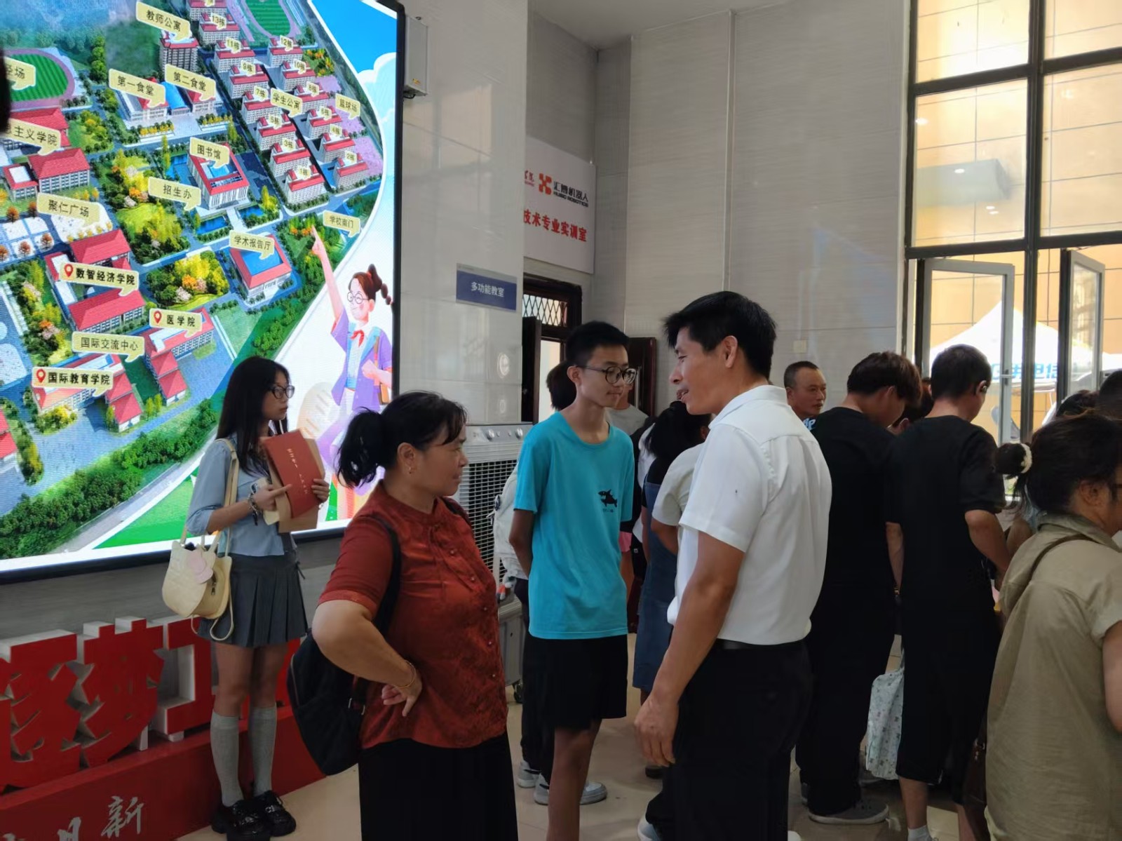 校党委书记、督导专员应露晨,党委委员、校行政负责人李盛艳等校院领导一行深入迎新现场,详细了解报到流程、宿舍安排及志愿服务情况,与新生、家长亲切交流,关切询问报到是否顺利、住宿是否满意,并叮嘱工作人员要提供贴心服务,让新生感受到“家”的温暖。